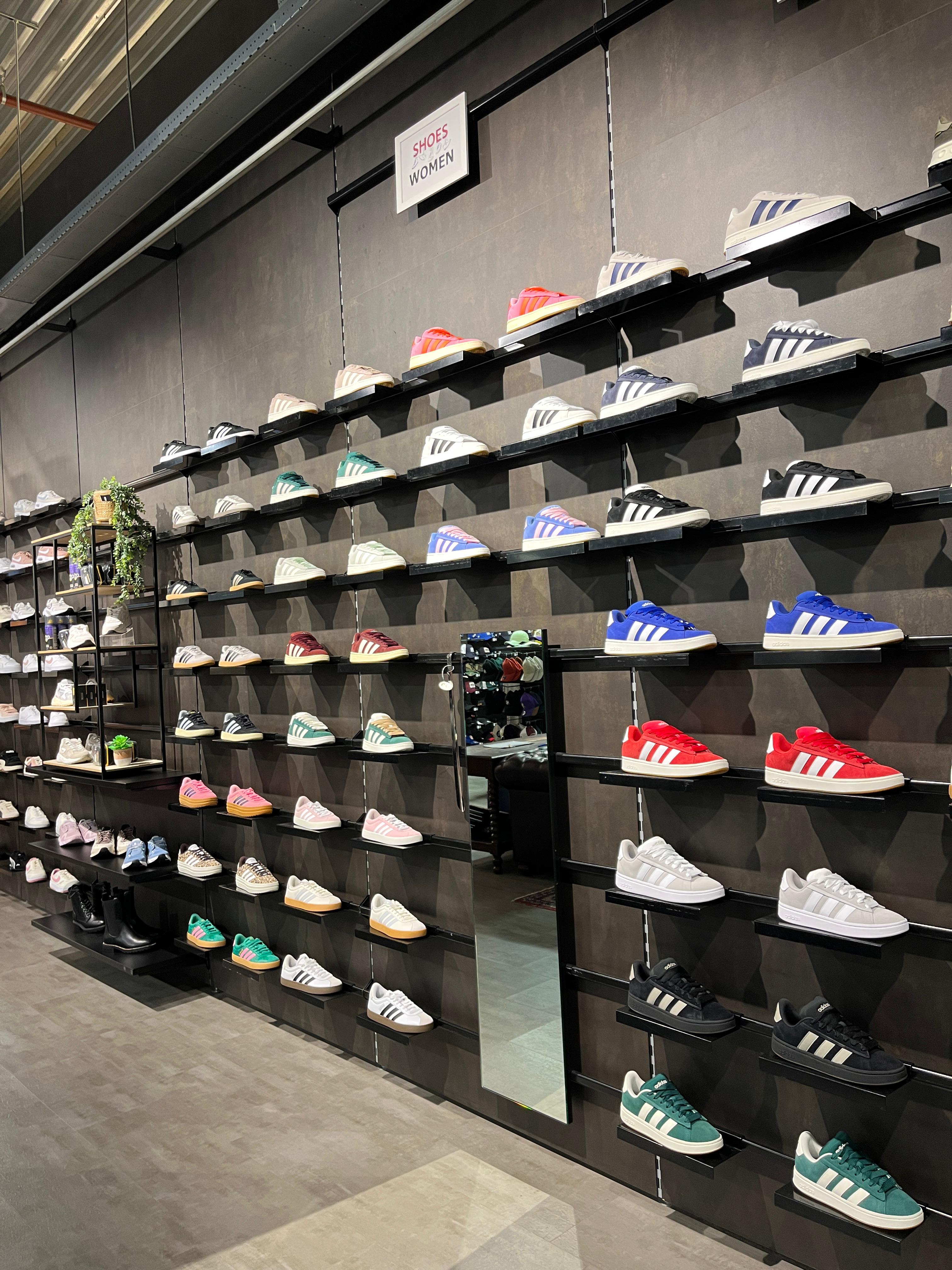 De kracht van Intersport Roermond is het brede, complete aanbod. Van sportkleding en schoenen tot lifestylemode, voor dames, heren en kinderen. “We willen een winkel zijn waar het hele gezin terecht kan”, zegt Anita. “We zijn laagdrempelig, met gratis parkeren voor de deur en het feit dat we vrijwel altijd open zijn. Klanten moeten zich hier op hun gemak voelen en gemakkelijk hun weg kunnen vinden.” De multibrandstore werkt met duidelijke hoofdseizoenen. In de winter is wintersport de absolute omzettrekker en in de zomer ligt de nadruk op bad- en beachwear. Daarnaast zijn training (fitness in de breedste zin van het woord) en voetbal belangrijke categorieën, aangevuld met casual sportmode. Ook wel: comfortabele athleisure-items die klanten niet alleen dragen tijdens het sporten, maar ook in het dagelijks leven. “We willen voor zowel de diehard sporter als de casual leisure klant een compleet aanbod bieden”, benadrukt Anita. Zoals al eerder benoemd, omvat de collectie van Intersport Roermond maar liefst 230 merken. Het assortiment vraagt om constante bijsturing. “We volgen de trends op de voet en analyseren continu de doorverkoopcijfers,” zegt Femke. “Sommige merken werken hier al jaren goed, andere verdwijnen na een paar seizoenen weer. Het merk moet commercieel interessant zijn, maar ook echt passen bij datgene waar onze klanten naar op zoek zijn.” Nike, Adidas, Puma en Under Armour blijven de grote spelers binnen de winkel - en onmisbaar voor het assortiment - maar het team kijkt ook bewust verder, om een mooie mix te kunnen bieden. “De marges op die grote labels staan onder druk. Daarom zoeken we actief naar sterke, minder dominante merken die goed bij onze klant passen”, legt Anita uit. “Het Deense Athlecia is daar een mooi voorbeeld van: modieus én functioneel, en we hebben er een fijne samenwerking mee.” Nieuwe merken worden elk seizoen toegevoegd, maar alleen met de regel dat er dan ook iets geschrapt wordt. “Zo houden we focus en overzicht. Voor inspiratie gaan we graag naar beurzen zoals CAST organiseert in Nieuwegein.” Een populair merk binnen de schoenenafdeling? “Skechers doet het verrassend goed. Klanten gaan aan op het comfort.”