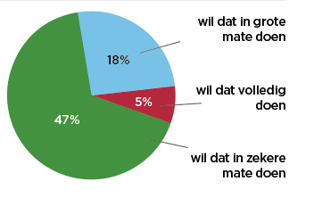 Uit het rapport blijkt dat consumenten sterk gemotiveerd zijn om in de toekomst duurzamere keuzes te maken, maar er blijft sprake van een duidelijke kloof tussen houding en gedrag. 71% van de ondervraagden geeft aan hun koopgedrag te willen veranderen richting meer duurzame mode – van bewuster kiezen tot het vermijden van fast fashion. In deze grafiek wordt de de mate van motivatie uitgelicht.